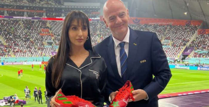 بادرت نجمة بوليود المغربية، نورة فتحي، بتقديم هدية خاصة لرئيس الاتحاد الدولي لكرة القدم (فيفا)، السويسري جياني إنفانتينو، كرسالة شكر، بعد أن جرى اختيارها من أجل المشاركة في إحدى أغنيات المونديال، والحفلات الخاصة بنسخة قطر 2022.