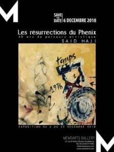 سعيد حجي الفنان التشكيلي احد رواد الحركة التشكيلية المعاصرة ،أربعون سنة من الحضور منذ سبعينيات القرن الماضي نظم عدة معارض داخل وخارج الوطن ، سعيد حجي يضرب موعدا جديدا لعشاق ونقاذ الفن التشكيلي لافتتاح معرضه الجديد انبعاث فينيق برواق MémoArts من 6دجنبر إلى 22منه بالدار البيضاء