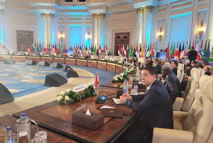 انطلقت، اليوم السبت بالعاصمة الإدارية الجديدة بضواحي القاهرة، أعمال “قمة السلام”. ويمثل محمد السادس، في هذه القمة ناصر بوريطة، وزير الشؤون الخارجية والتعاون الإفريقي والمغاربة المقيمين بالخارج.