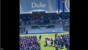 غادر عشرات الطلاب حفل التخرج بجامعة ديوك الأميركية، يوم الأحد، و