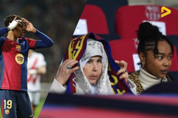 وخلال المباراة، برزت جدة اللاعب لامين جمال، حيث خطفت الأنظار من قلب مدرجات ملعب “لويس كومبانيس”، إذ حضرت اللقاء بجانب ابنها منير النصراوي، بغية مؤازرة لامين في المباراة التي تحمل رقم 100 في مسيرته بكرة القدم.