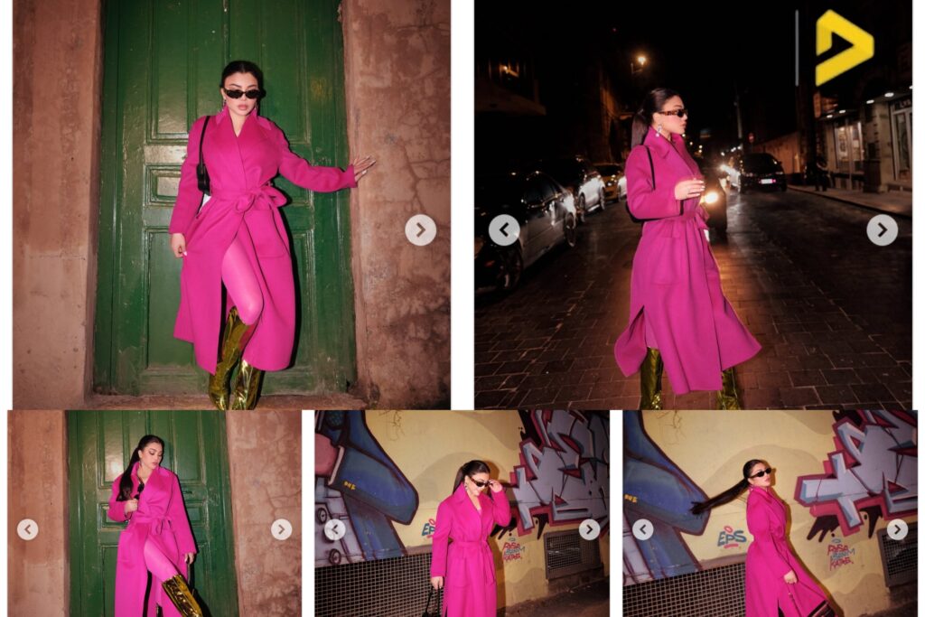 أما في بيروت، فاعتمدت وهبي إطلالة “ستريت ستايل” جريئة بمعطف زهري طويل نسّقته مع جوارب وحذاء ميتاليكي أخضر، في تناقض لوني لافت، أضاف بعداً حيوياً إلى إطلالتها، إلى جانب نظارات داكنة وحقيبة جلدية وتسريحة ذيل حصان كلاسيكية، ما يُبرز قدرتها على توظيف التفاصيل في بناء صورة بصرية جاذبة.
