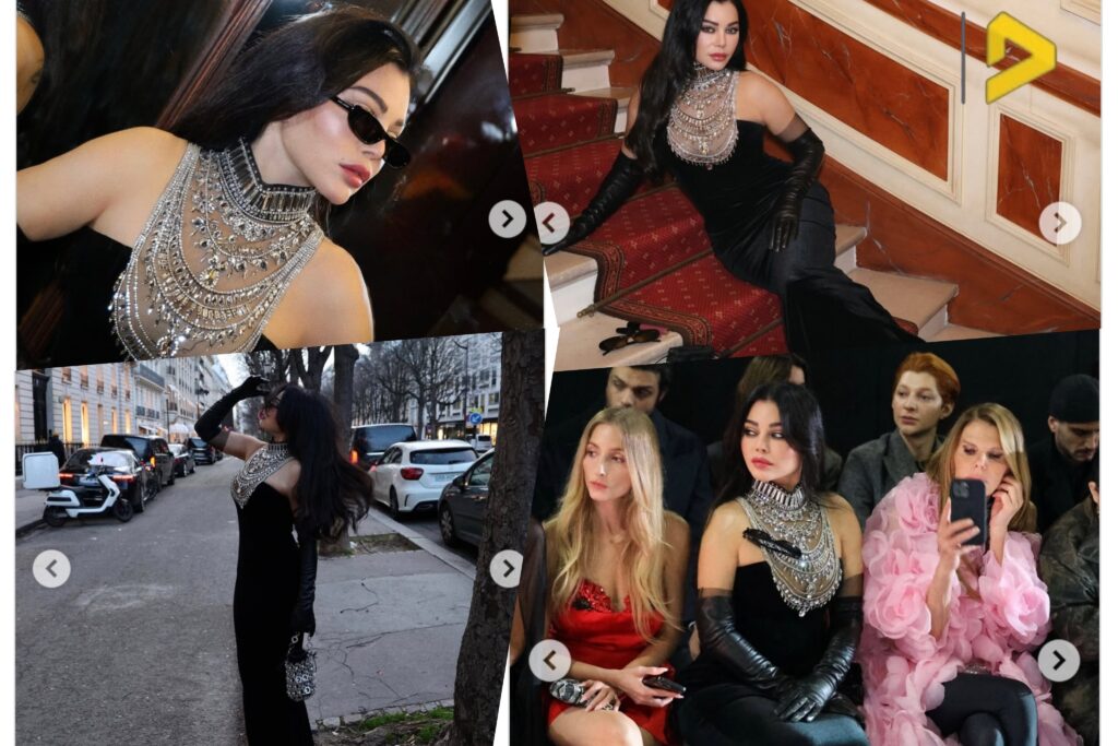 خلال حضورها عرض دار “يانينا” ضمن أسبوع الموضة الباريسي، تألقت وهبي بفستان أسود طويل مزين بتفاصيل فضية على شكل عقود مكدسة، تم ربطها بخياطة دقيقة لتمنح التصميم فخامةً استثنائية. هذه الإطلالة تندرج ضمن نمط “الهوت كوتور” الذي لا يكتفي بالزينة، بل يتحدى الحدود الفنية للخياطة والتصميم.