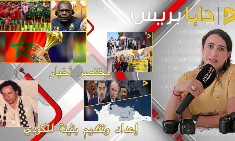 كما تتناول النشرة تطورات دولية متوترة تقودها الإدارة الأميركية، وحراكاً سياسياً إقليمياً، إلى جانب مستجدات رياضية تخص المنتخب الوطني المغربي، ومحطات ثقافية وفنية أبرزها بورتريه الفنان عبد الهادي بلخياط والزاوية الأسبوعية للناقد والإعلامي عبدالعزيز كوكاس ّنافذة على روائع السينما”.