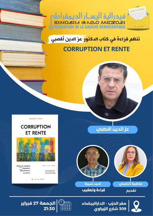 احتضن مقر فيدرالية اليسار الديمقراطي بالدار البيضاء، مساء الخميس 27 فبراير، لقاء فكريا خُصص لمناقشة كتاب “الفساد والريع” للدكتور عز الدين أقصبي، في سياق سجال متجدد حول طبيعة الفساد وحدود مقاربته داخل النقاش العمومي.