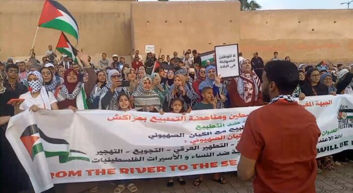 وجاءت هذه الوقفة، التي دعت إليها الجبهة المغربية لدعم فلسطين ومناهضة التطبيع، ابتداء من الساعة السابعة مساء، حيث رفع المحتجون شعارات مؤيدة للقضية الفلسطينية من قبيل “فلسطين أمانة والتطبيع خيانة”، معبرين عن استيائهم مما وصفوه بمحاولات فرض ممارسات غير مألوفة داخل فضاء عمومي يحمل رمزية تاريخية قوية.